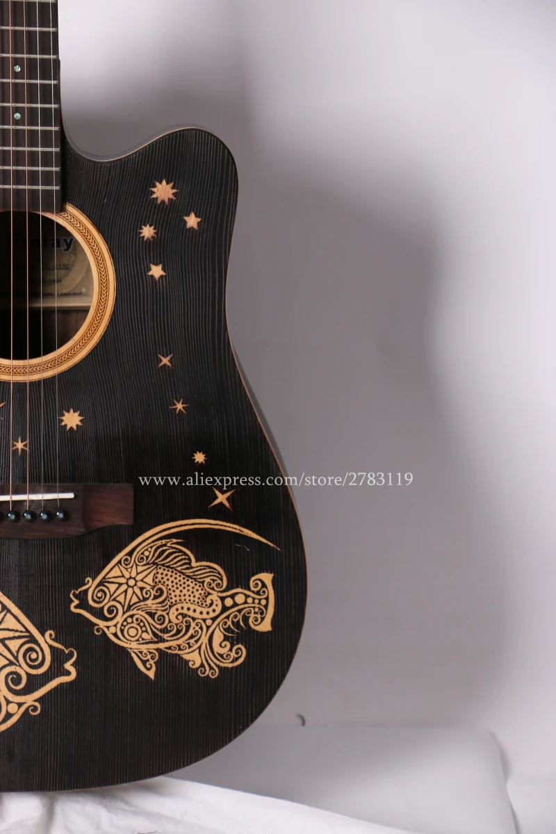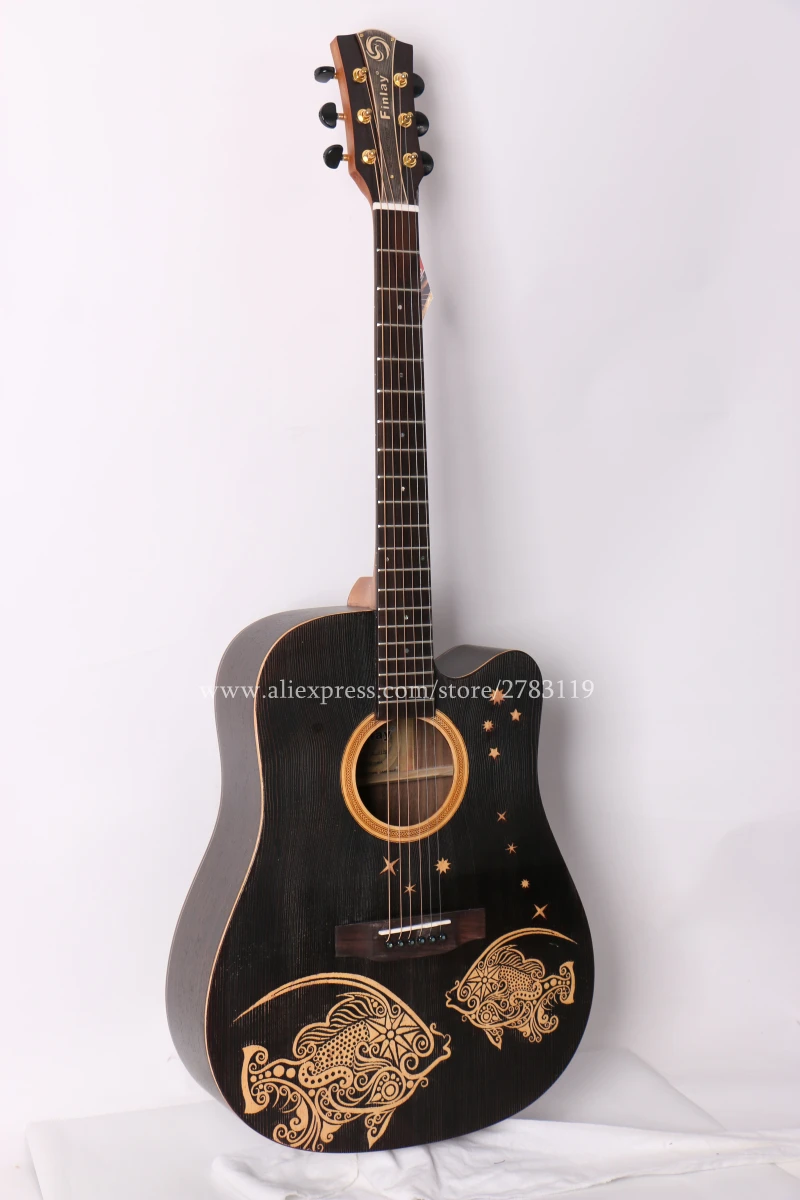 Offer Description for Finlay 41" Electric Guitar,Solid Spruce Top/Rosewood Body,Drawing carving Top, guitars china With Hard case,Pisces,big sale